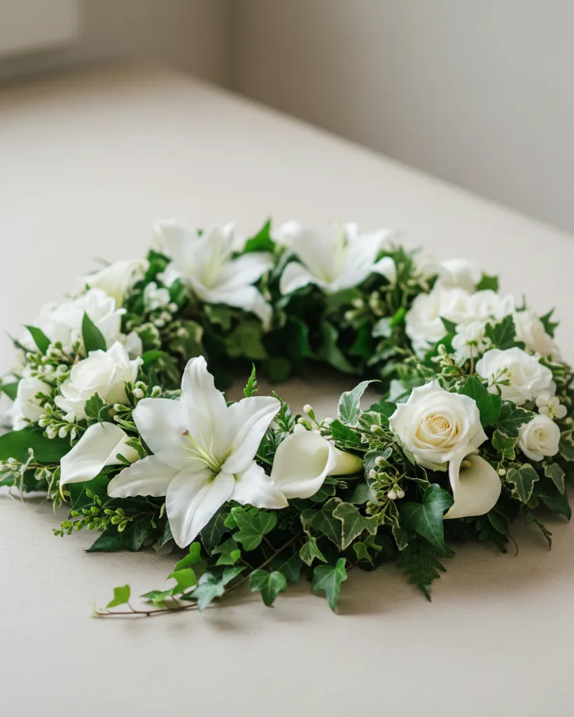 - Trauerfloristik umfasst Kränze, Sargbuketts, Urnenschmuck und Handsträuße für die Beisetzung.
